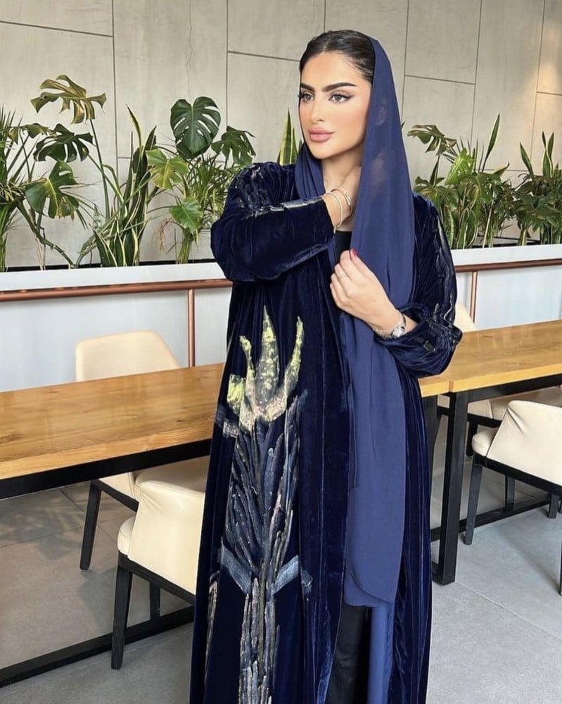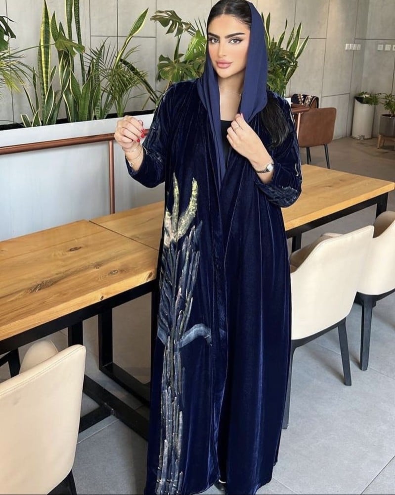 عباية من خام المخمل مزينه برسم ع الجانب الايسر واليدين