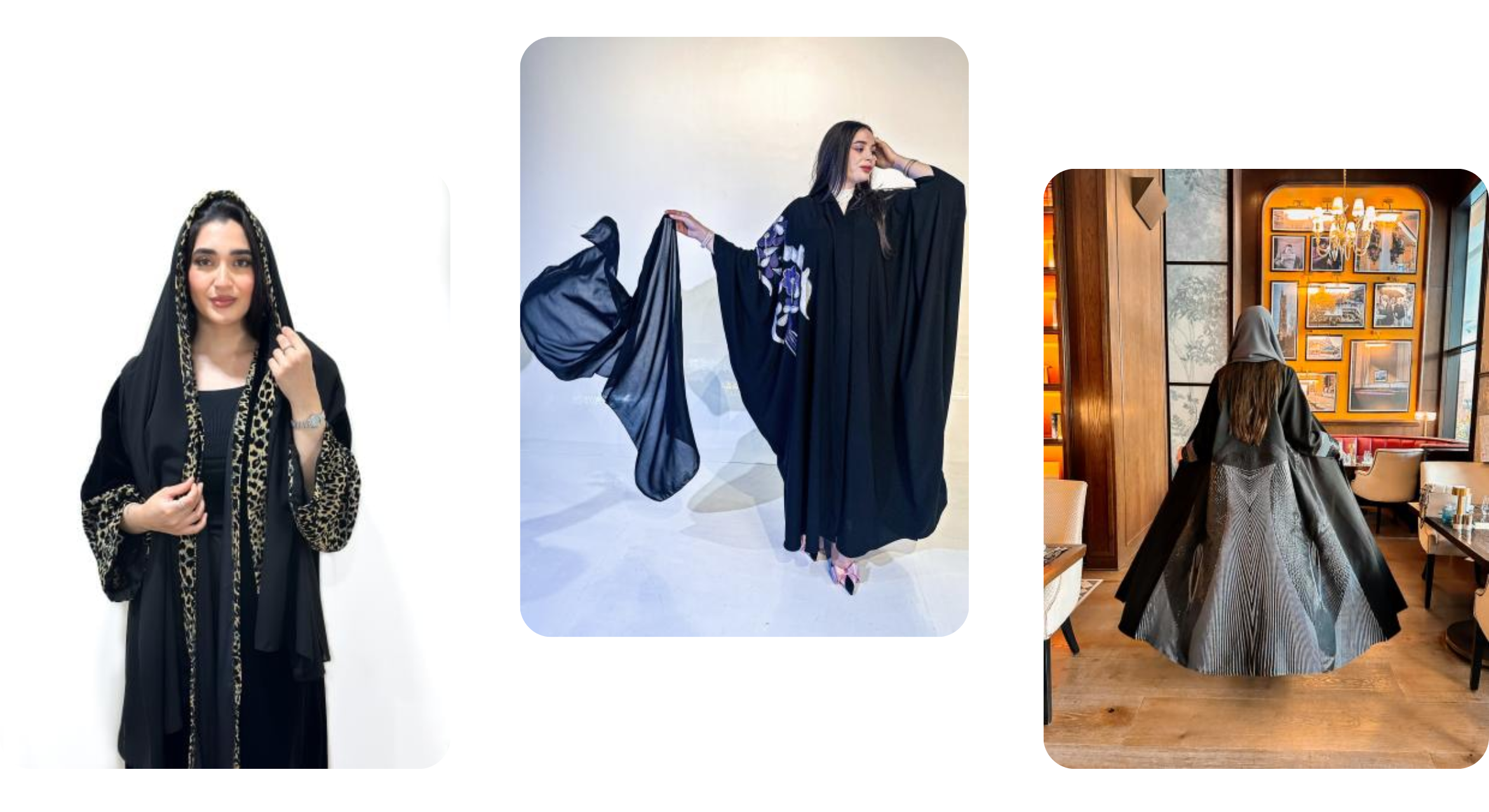 • العباية بتصميم عصري أو مفتوحة من الأمام: يمكنك هنا اختيار طرحة مميزة بتفاصيل ناعمة تعكس الأسلوب ذاته في العباية، مع الابتعاد عن التفاصيل المبالغ فيها لضمان التوازن والأناقة.